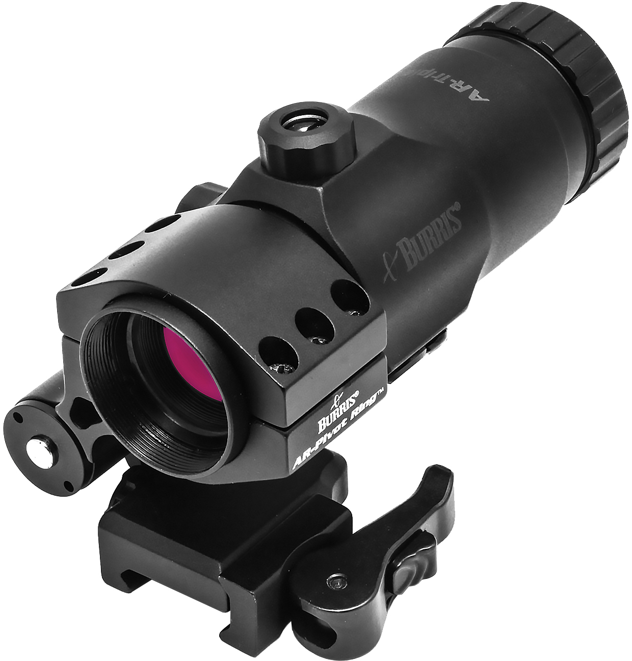 Designed to increase the range of your non magnified optic by adding 3x magnification the ar tripler can be flipped to the side at the push of a button for close quarters shooting when mounted on the burris ar pivot mount.